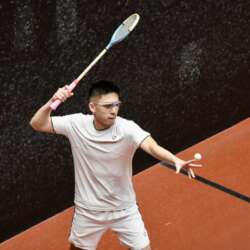 The third game was pivotal and Tom needed to take back some control – and he did, making the early running to take a 4-1 lead, then 5-2. Points were tough to win with both players picking up shots off the back wall and scampering around the front, but again Tom continued to hold a slight advantage and take his lead to 8-4. Ben wasn’t giving up and pulled back a couple of points, and a further point apiece saw the score reach 9-7 in Tom’s favour. On the pair battled, always in the best of spirit, calling their own shots down as gentlemen, reaching 11-8 to Tom. It was now or never, but it was Ben who clawed back to 10-11, then 11-all and then, finally establish a 12-11 lead. Both then gained a single point on service to leave Ben 13-12 up. With the gallery wanting more, Ben found the answer and secured the last two points, winning 15/12, and surge ahead three games to love.