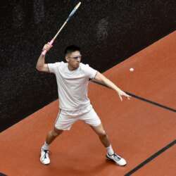 Tom needed to regroup and the second game was incredibly tight. Ben opened with a brace, before Tom pulled one back. After further tentative play and great returned, it was Tom who nudged ahead to 4-2 and then 5-2. But now the game was deadlocked, but it was Ben who inched back with a point every other hand, finally levelling at 5-all. Again, Tom served high putting Ben in the box and he really made it count, reeling off nine straight points to lead 14-5. Tom again failed to score and Ben scored the vital point on the next hand to win 15/5, mostly on a single hand, and establish a two-love lead.
